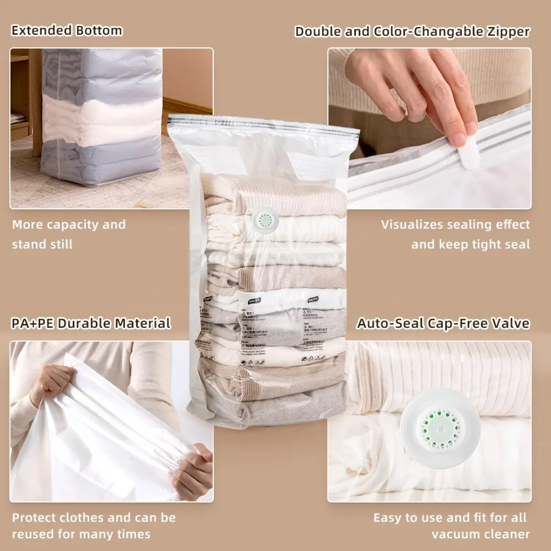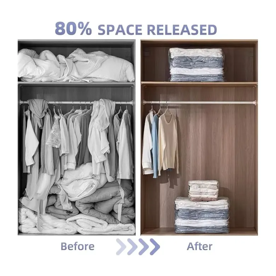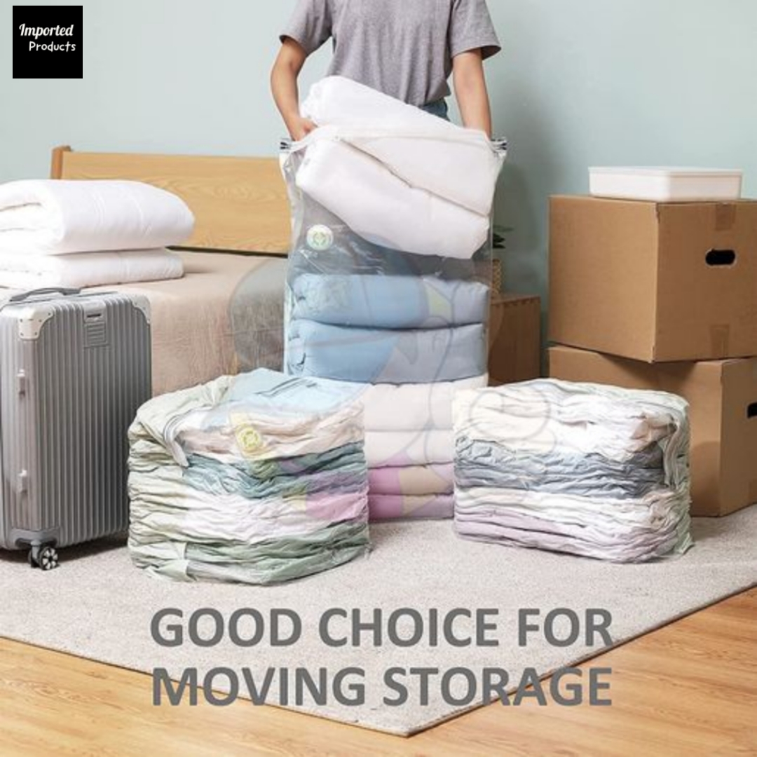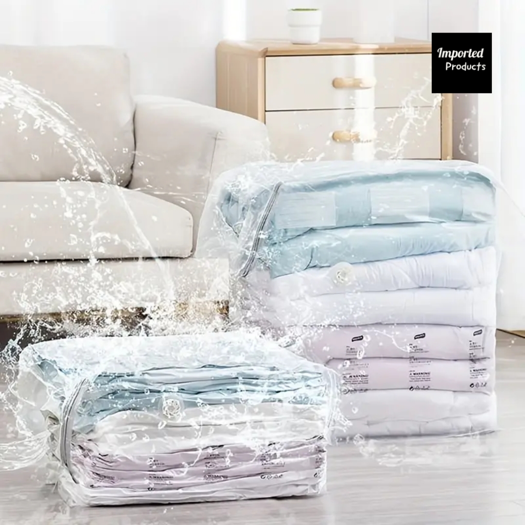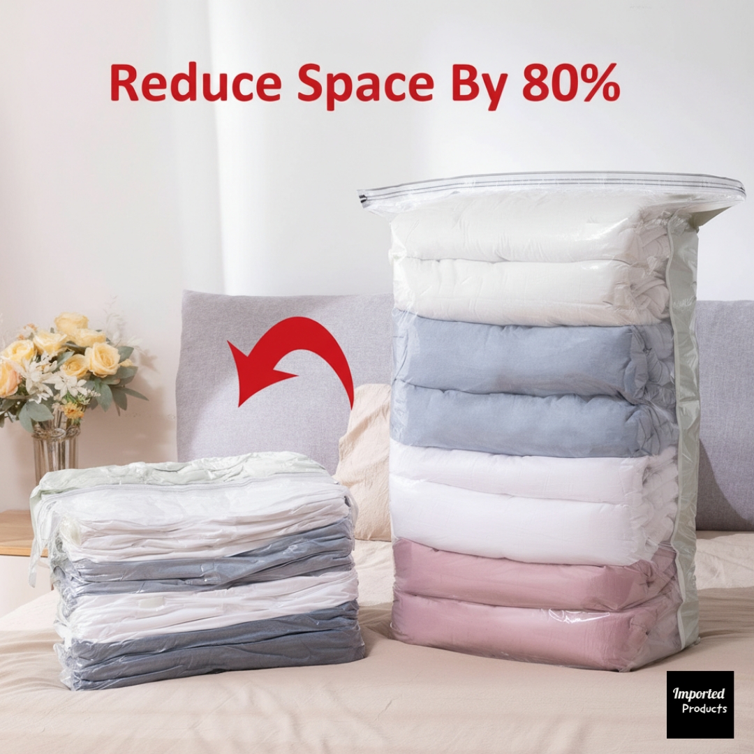 সবচেয়ে বড় সুবিধা হলো—এই Magical Vacuum Bag ব্যবহার করতে কোনো পাম্পের প্রয়োজন নেই। পাম্প ছাড়াই হাতের প্রেশারে বা বসে খুব সহজেই অল্প সময়ের মধ্যে ভ্যাকুম করা যায়।
